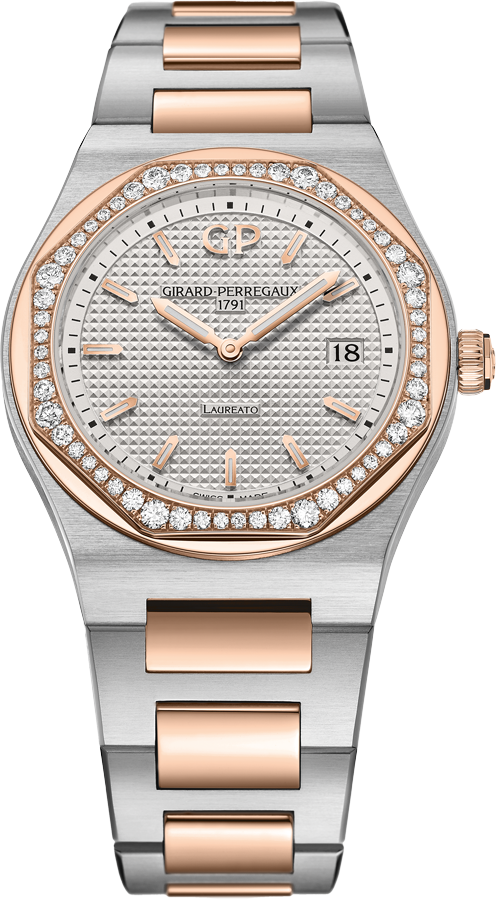 The Laureato 34 mm jewellery watch from Girard-Perregaux. I find the diamond-studded bezel and the pink gold especially elegant.