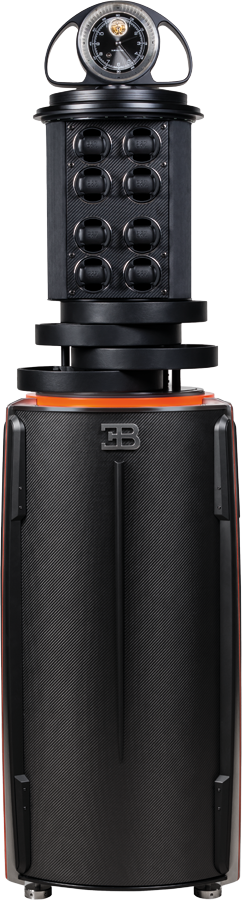 La Grande Illusion Chiron 300 est donc une création unique qui évoque une sculpture, couronnée par l’incomparable horloge tourbillon Flying Minute de Buben & Zörweg. Le coffre-fort multifonction de 215 kg surprend par le fait qu’une fois déverrouillé, exclusivement par un capteur biométrique d’empreintes digitales ou une puce à transpondeur, le coffre-fort et son contenu glissent élégamment vers le haut. La Grande Illusion Chiron 300 élève alors les objets de valeur conservés à l’intérieur, comme une montre, un collier ou les clés de l’hyper-sportive, à partir d’une colonne. Un tiroir spécial qui protège des ondes radio a été développé pour garantir un stockage des clés particulièrement élégant et sécurisé.