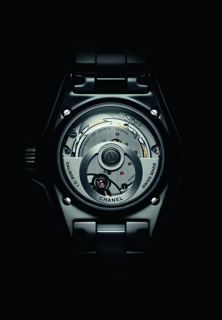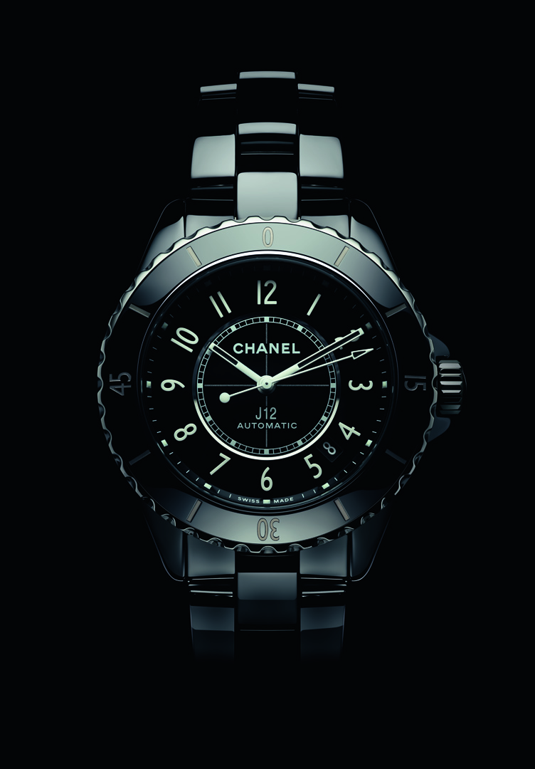 Pour ancrer totalement la montre J12 dans les codes de la Maison, les mentions AUTOMATIC et SWISS MADE sont désormais en typographie Chanel, le SWISS MADE étant intégré sur le rehaut. La typographie originale des chiffres a également été repensée par le Studio de Création pour l’optimiser et l’affiner. Appliqués sur le cadran, ces chiffres sont désormais en céramique. Les aiguilles, elles aussi, ont été revues et corrigées. Heures et minutes ont à présent des largeurs équivalentes avec des zones luminescentes en Super-LumiNova de couleur noire sur la J12 noire, ce qui en fait l’exact négatif de la J12 blanche. L’épaisseur de la boîte monobloc en céramique a été délicatement augmentée pour accueillir son nouveau mouvement certifié chronomètre (70h de réserve de marche) mais la silhouette de la J12 demeure fluide grâce à un profil adouci et un peu arrondi.