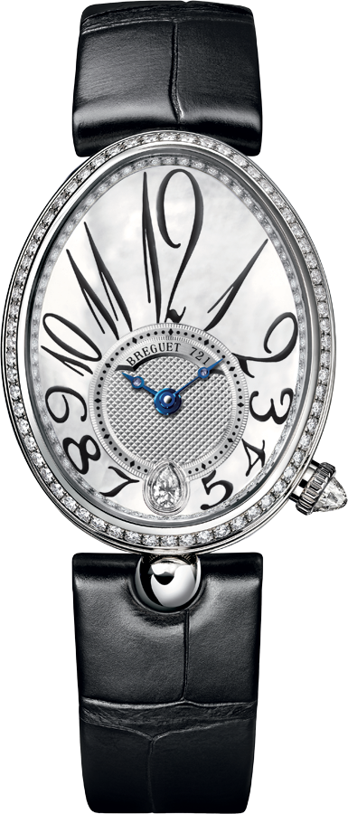 Ses heures et minutes restent décentrées dans un cadran guilloché . Un diamant taille poire éclate de lumière à 6h. Contestant les conventions, les montres Reine de Naples sont l’expression des esprits libres d’aujourd’hui et témoignent de la vitalité de Breguet.